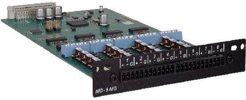 NIO-8AES 输入 / 输出卡是一款 8 通道为 AES 输入 / 输出设备提供连接产品。是为 NION 主机量身打造的一款 AES 输入 / 输出设备。根据 NION DSP 模块配置,一台 NION 可以安装 4 块或 2 块 NIO-8AES 输入 / 输出卡。